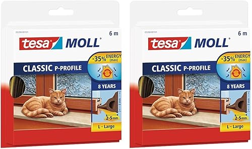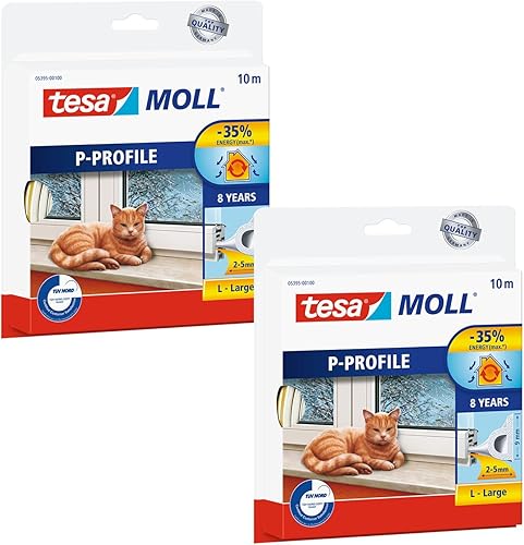 tesamoll P-Profil Gummidichtung - Selbstklebende Dichtung zum Isolieren von Spalten an Fenstern und Türen - Weiß - 10 m x 9 mm x 5,5 mm