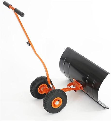 Fuxtec Schneeschaufel auf Rädern FX-SS740, höhenverstellbar - Komfortables Schneeräumen, rückenschonender Schneeschieber, Schneeschild 75 cm Arbeitsbreite-Höhe 42 cm, platzsparend da zusammenklappbar