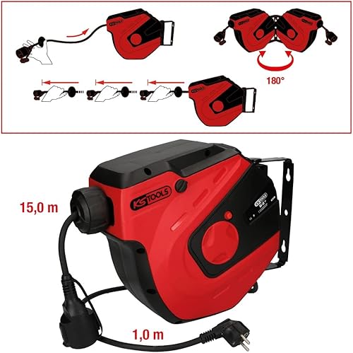 KS Tools, 150.4217 Werkstatt-Kabelaufroller, 15m, 1,5mm²