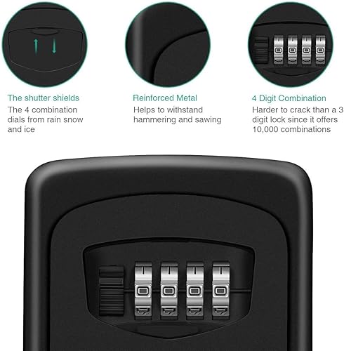Schlüsseltresor Schlüsselsafe Mit 4-stelligem Zahlencode,Schlüsselbox mit Zahlenkombination,wasserdicht und rostfrei, Key safe, Key Lock Box zur Wandmontage