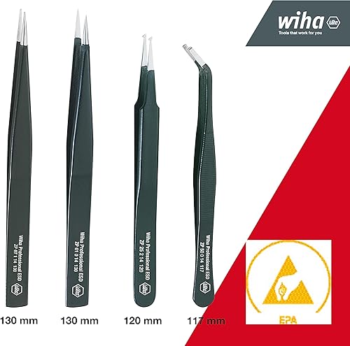 Wiha SMD-Pinzette Set Professional ESD gemischt I 5-tlg. inkl. Aufbewahrungsbox I für elektronische Reparaturen I Präzisionspinzette I Elektropinzette (32349)