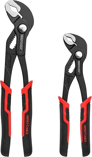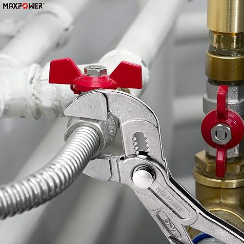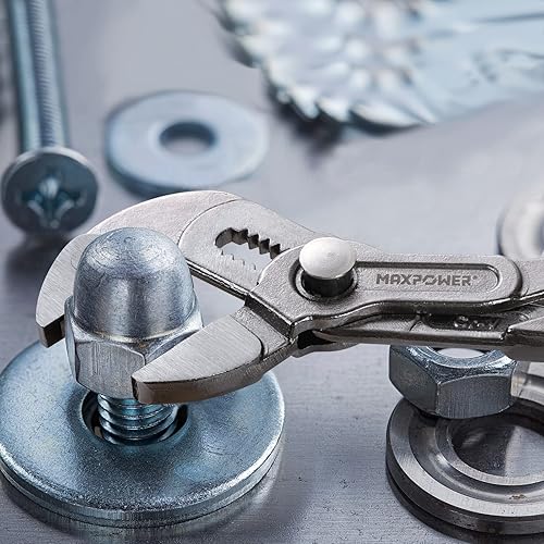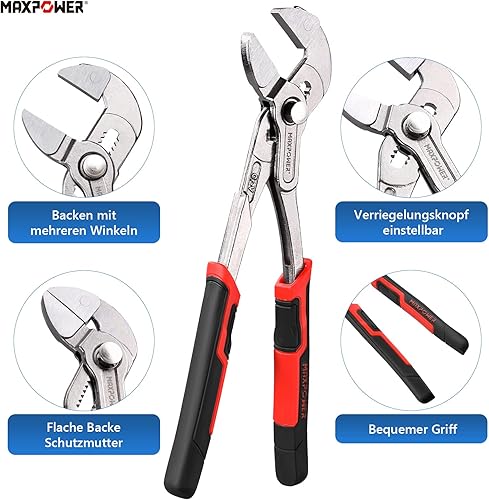 MAXPOWER Wasserpumpenzange Set, 3 tlg. Rohrzange 180 mm / 240 mm / 420 mm aus CR-V Stahl, Feinverstellung per Knopfdruck