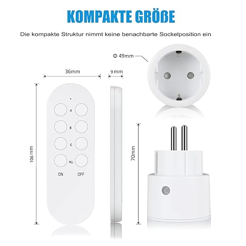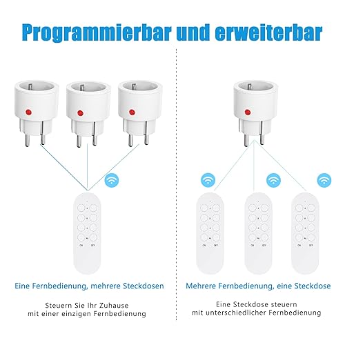 SURNICE Steckdose mit Fernbedienung, 80m Reichweite, 10A 2300W Funksteckdosen mit Fernbedienung, Funkschalter Set Mini mit Fern bedienung programmierbar, für Innendekorationen, Haushaltsgeräte