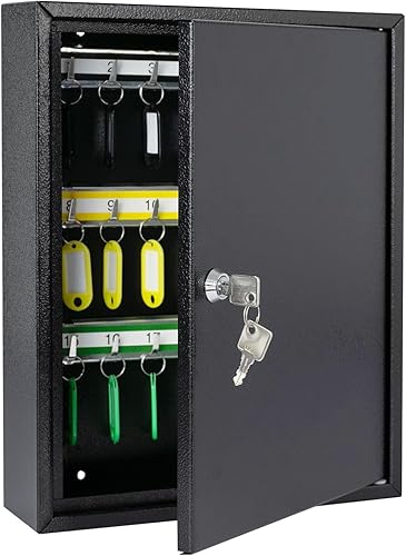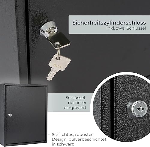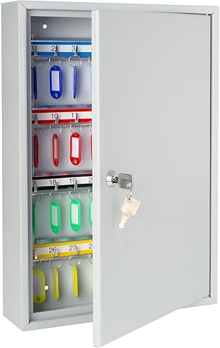 HMF 13542-07 Schlüsselschrank Schlüsselkasten 42 Haken verstellbare Hakenleisten, 35,0 x 27,0 x 8,0 cm, lichtgrau