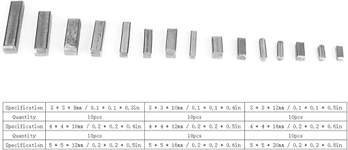 140 Stück Passfedern Stahl Round Ended Passfeder Passfedersatz 3 * 3/4 * 4/5 * 5/6 * 6 mm Breite und Höhe Federschlüssel Federstifte mit Kunststoffbox für Parallelantrieb