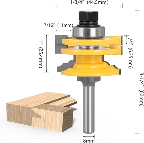 APlus 8mm Gehrung Verleimfräser, Oberfräse Lock Miter Router Bit Holzbearbeitung Fräser Schneidwerkzeug für Fenster & Türen, Graviermaschine Trimmmaschine