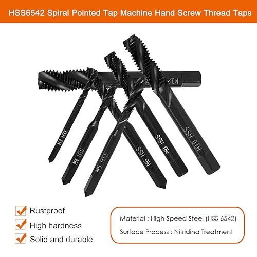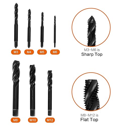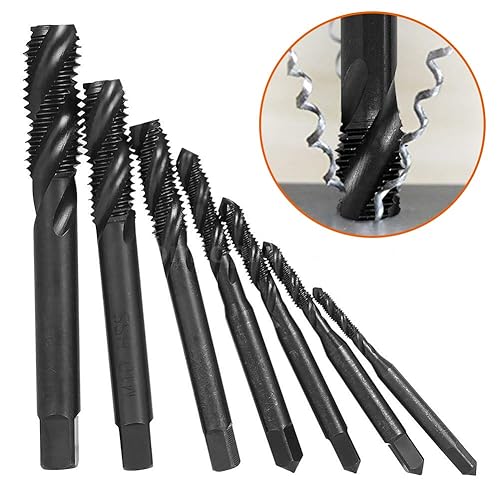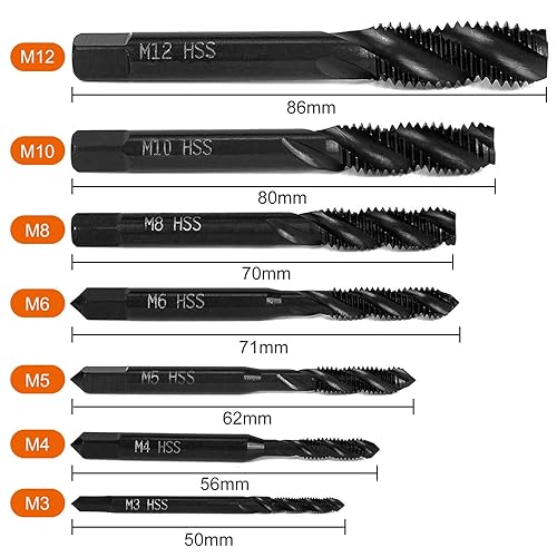 7 Stück Gewindebohrer Set, HSS 6542 Nitrieren Metrisch Spiralnutbohrer Maschinengewindebohrer Gewindebohrer Satz M3 M4 M5 M6 M8 M10 M12 für Metall Holz Bohrer