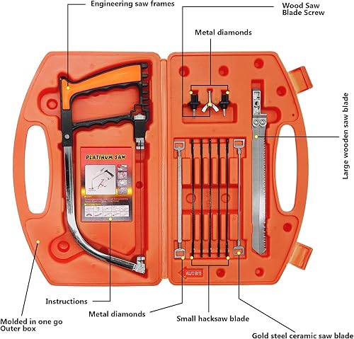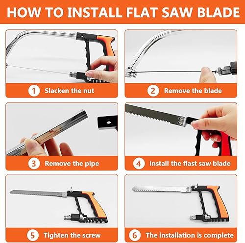 WAIZHIUA Handsäge Bügelsäge Set, 13-in-1 Multifunktionssäge Metallsäge, Einstellbarer Rahmen, Handsägen Set mit 6 HSS Stahl Sägeblätter für Metall Glas Fliesen Holz Kunststoff