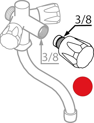 Sanitop-Wingenroth Sanitär-Oberteil 3/8 Zoll | mit Dreikanthaubengriff | verchromter Kunststoff | Warmwasser-Griff | für Zweigriffarmaturen | Messing verchromt | Rote Markierung | 24072 7