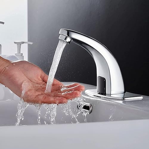 Gangang Bad Wasserhahn mit Sensor Infrarot Berührungsloser Wasserhahn Automatik Waschtischarmatur für Badzimmer Waschbecken