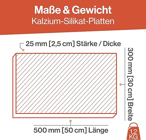 Feuerfest 123 - Kalziumsilikatplatte [500x300x100 mm] - Dämmung Verkleidung Öfen & Kamine - Dämmplatte Klimaplatte niedrige Wärmeleitfähigkeit - 1.000 °C hitzebeständig - Wärmedämmplatte
