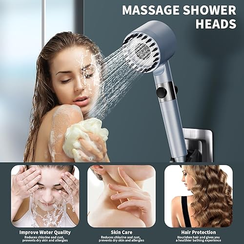 ButterFox Duschkopf mit Filter, Hochdruck Handbrause mit Schlauch, 4 Strahlarten Duschkopf Wassersparend mit Filtration in 15 Schichten, Duschbrause mit Verstellbarer für Erwachsene Kinder Haustiere