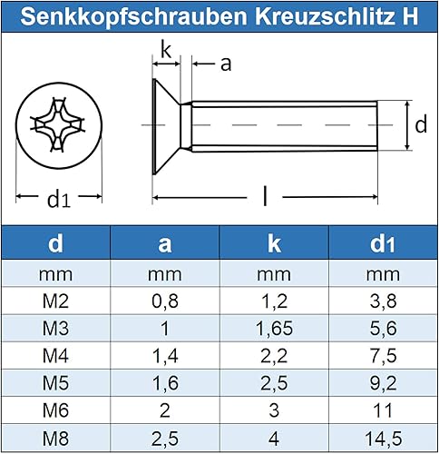Eisenwaren2000 | M5 x 85 mm Senkkopfschrauben mit Kreuzschlitz H (20 Stück) - DIN 965 - ISO 7046 Senkkopf Schrauben - Gewindeschrauben - Vollgewinde - Edelstahl A2 V2A - rostfrei