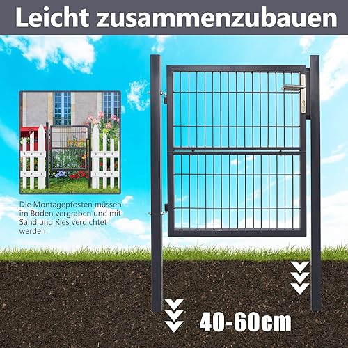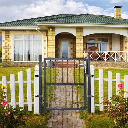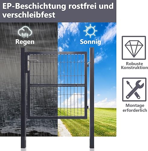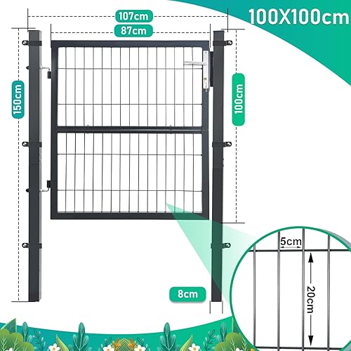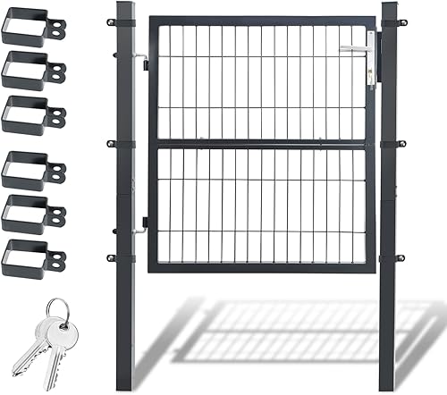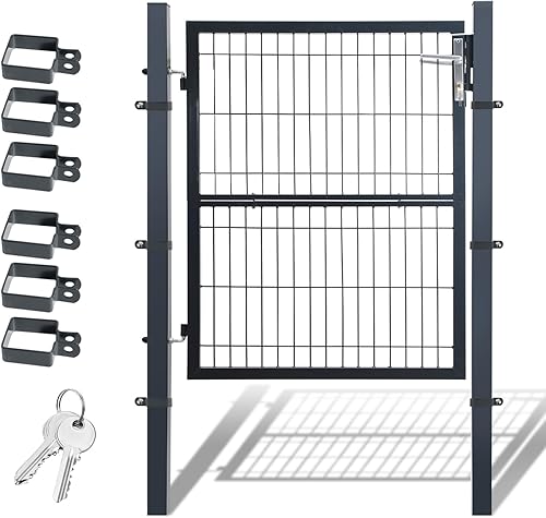 Daromigo Metall Gartentor, 120x100 Gartentür aus verzinktem Stahl, inkl. Griff, Schloss und 3 Schlüsseln, Robust Zauntor Hoftor, Zauntür Gartenzaun, Anthrazit