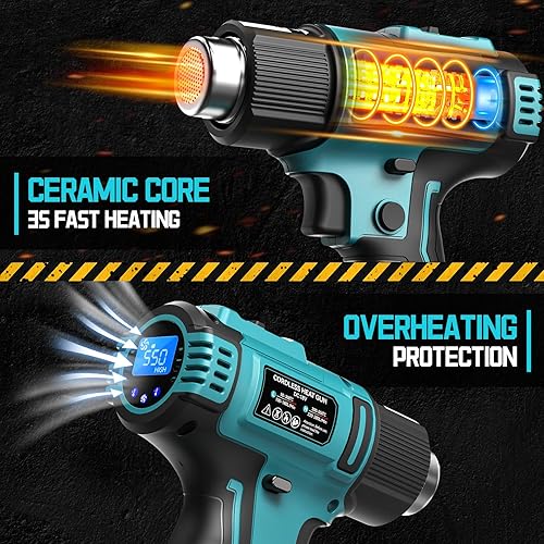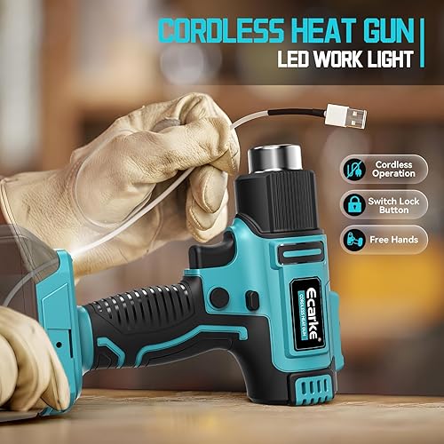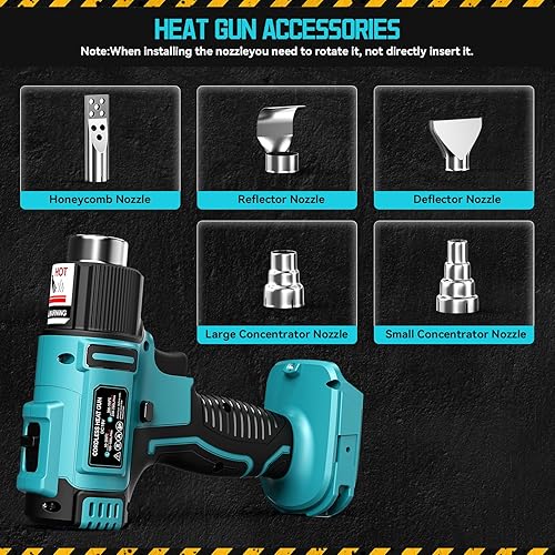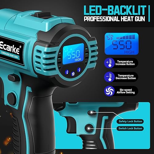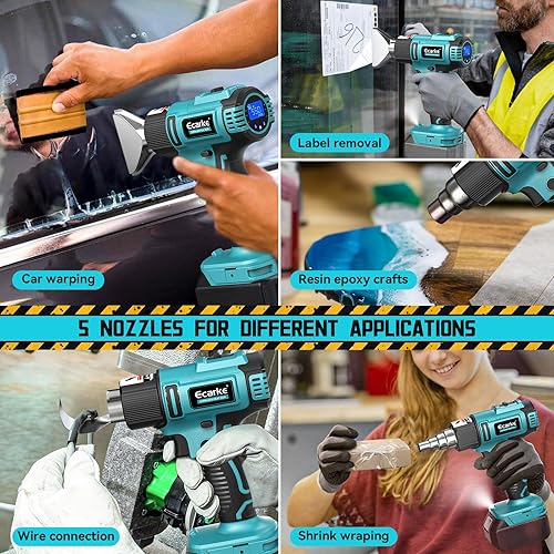 Ecarke Akku-Heißluftpistole für Makita 18V, 350W Heißluftfön 50-550°C Einstellbare Temperatur mit LCD-Display und 5 Düsen Heissluftpistole für Schrumpfen, Heizen, Schweißen (ohne Akku)