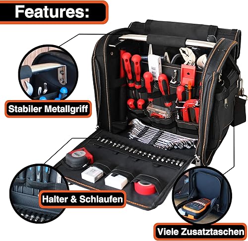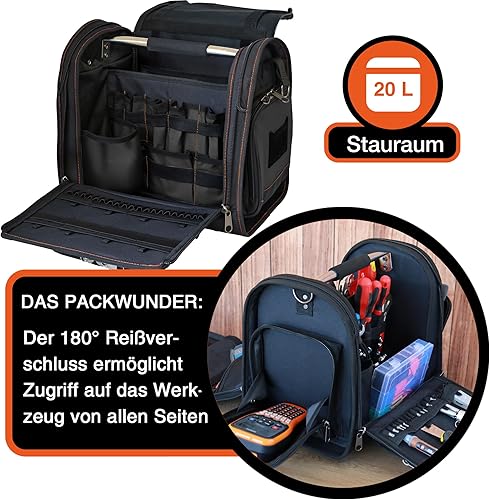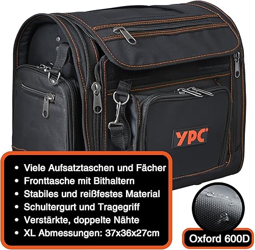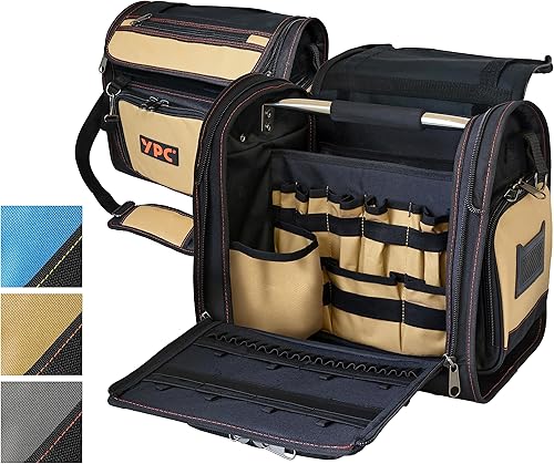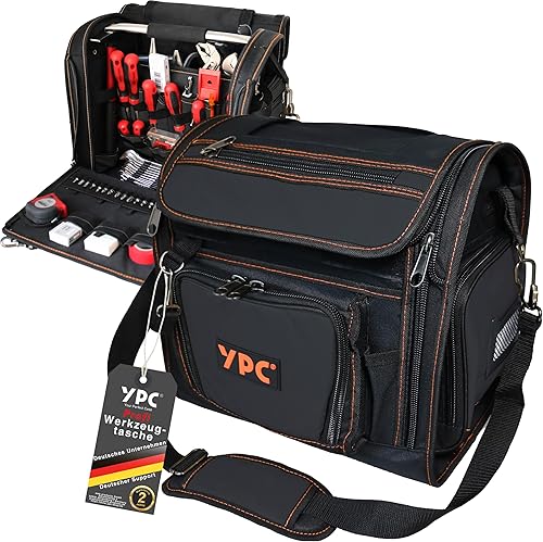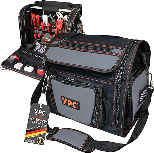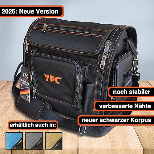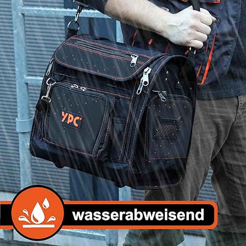 YPC Foreman Werkzeugtasche XL– Tragbare Aufbewahrungstasche mit Karabinerhaken, Wasserfest, Reißfest, Stabiler Metallgriff & Schultergurt mit Polsterung, Grau-Schwarz, 37x36x27cm – 20 kg Tragkraft