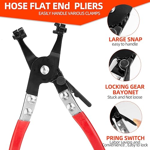 Schlauchklemmenzange Schlauchschellenzange mit Gerader Hals, Installationswerkzeug Auto-Reparatur Werkzeug für Auto-Wasserrohr Ring Type und Schwenkbare Flachbandschellen für KFZ Reparatur Fahrzeug