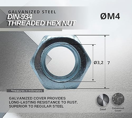 DOJA Barcelona | Muttern | 50 Sechskantmuttern M10 | 8 x 17 mm | Stahl Verzinkt | Muttern für Bolzen, Gewindemuttern, Kupplungen, Verstell- und Befestigungselemente im Innen- und Außenbereich...