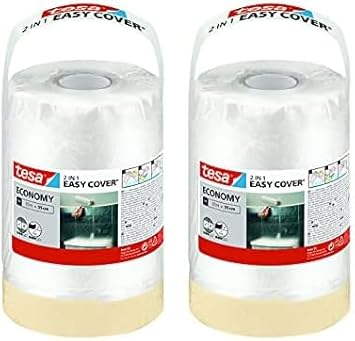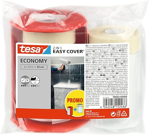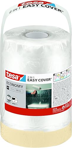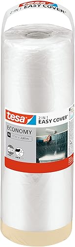 tesa Easy Cover ECONOMY Folie für Malerarbeiten - 2 in 1 Malerfolie zum Abdecken und Kreppband zum Abkleben - 33 m x 140 cm