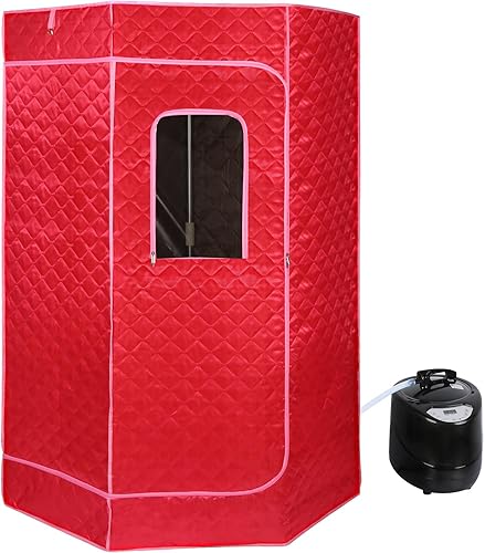 Dampfsauna für Zuhause, Mini Sauna Box, Tragbare Dampfsauna, Mobile Dampfsauna SPA, Gesunde Heimsauna, Dampfbad Sauna mit Fernbedienung (Rot-80 * 80 * 100cm)