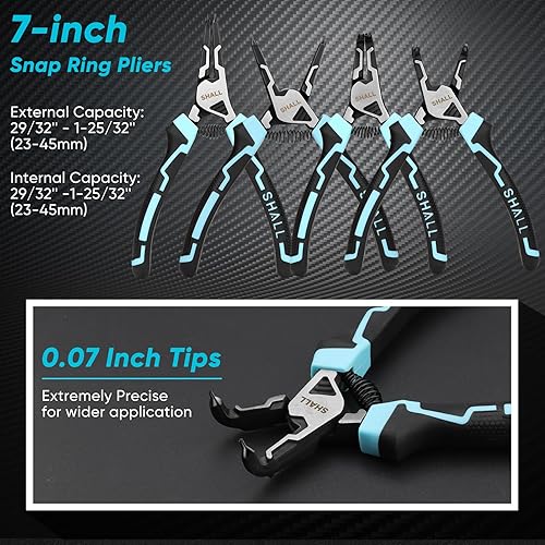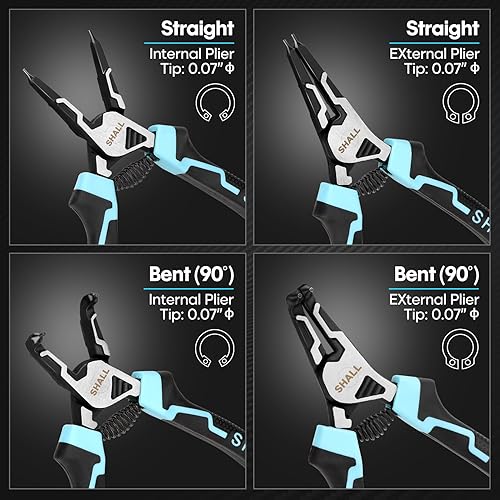SHALL Sprengringzangen-Set, 4-teiliges robustes 7-Zoll-Sicherungsringzangen, Sicherungsringzange mit 5/64-Zoll-Spitze, umgekehrte Zange für Ringentferner-Halterung mit tragbarer Tasche
