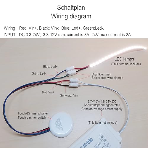 STBTECH 12V LED Touch Dimmer Schalter Verdeckt, DC 3.7-24V 3A Berührungsschalter Sensorschalter für Smart Home LED Lichtleiste, Durchdringt Holz, Stein, Glas usw, keine Löcher erforderlich(Weiß)