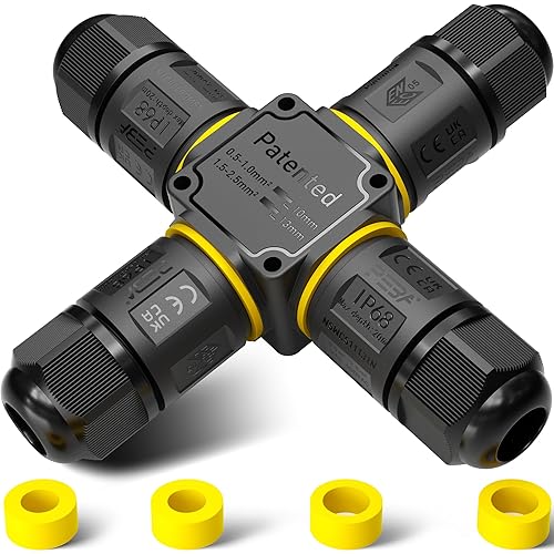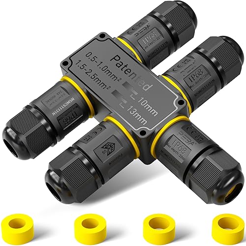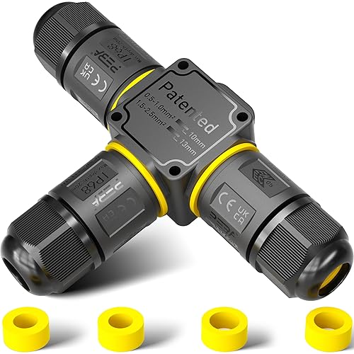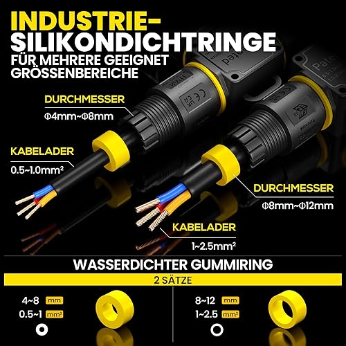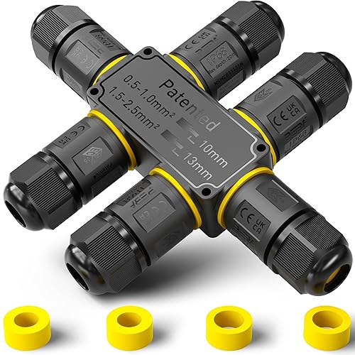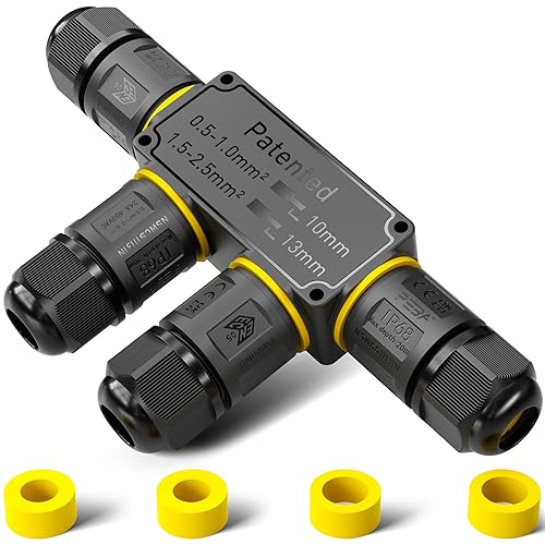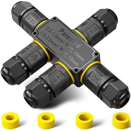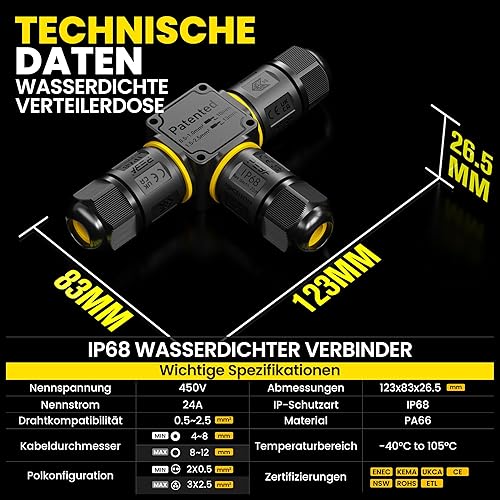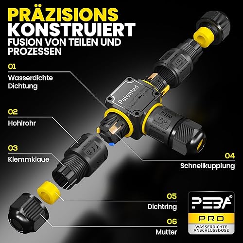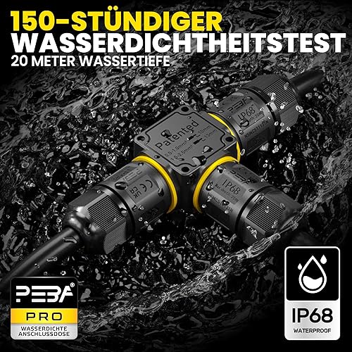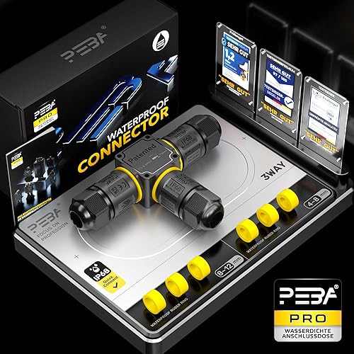 PEBA Kabelverbinder Wasserdicht 3 polig, 3-Wege IP68 Wasserdichte Kabelverbinder 4-12 mm Kabeldurchmesser, Verteilerdose außen, 3-Leiter, Verbindungsklemme mit Hebel für Outdoor, Abzweigdose Schwarz