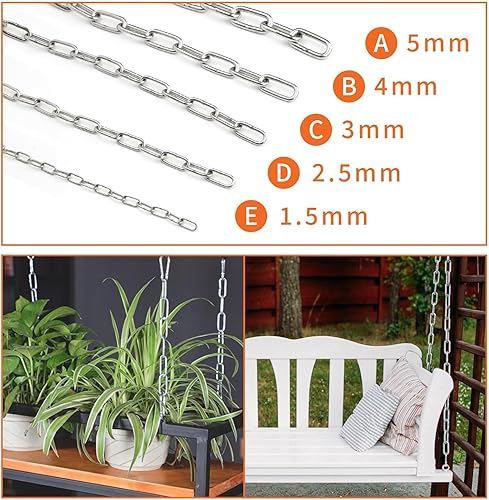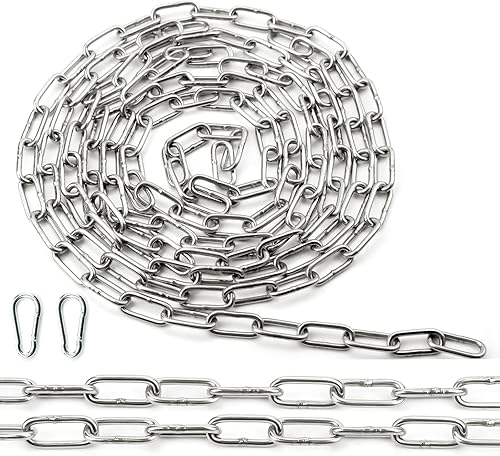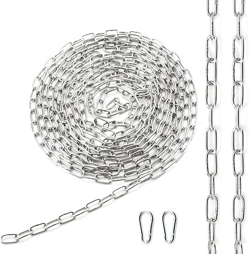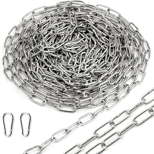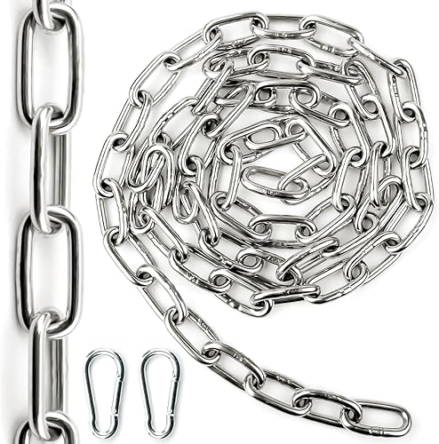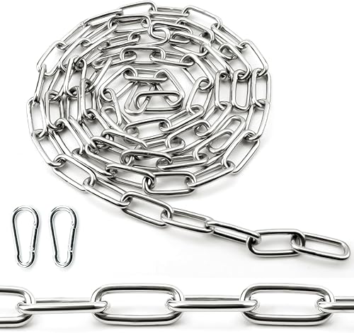 Ziamzra Edelstahlkette Meterware Stahlkette 3M 1,5 mm Edelstahl Ketten Gliederkette Verlängerungskette Metall Rundstahlkette Kette mit Karabiner für Hundekette Schaukeln Ketten Ankerkette Hängesessel