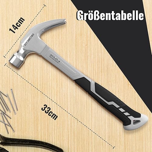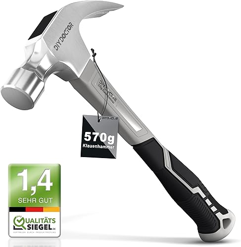DIY Doctor Schwerer Zimmermannshammer – 20oz Hammer aus geschmiedetem Stahl mit rutschfestem TPR-Griff – 567g Gerader Klauenhammer für Heimwerker und Bauprojekte