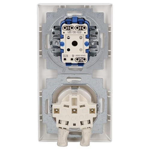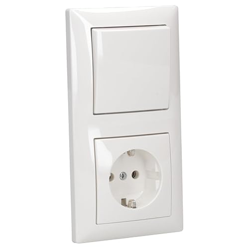 Busch Jäger Komplettset - Steckdosen + Lichtschalter Kombination (1 x Steckdose - 1 x Wippschalter - 1 x Rahmen 2 fach 1722-914) im eleganten Busch balance® SI Design in alpinweiß