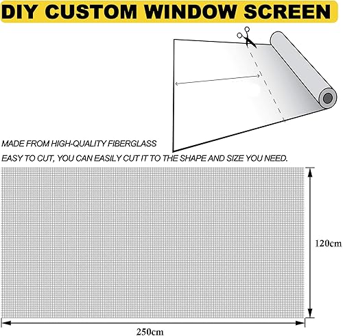 Dantolo Fliegengitter Fenster 120cm x 250 cm,Insektenschut Meterware,Zuschneidbares Moskitonetz,Fiberglas Fliegennetz für Fenster und Türen (Weiß)