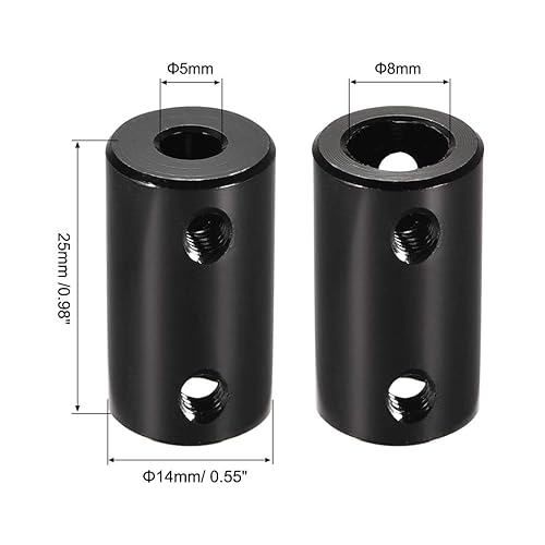 sourcing map Wellenkupplung Verbinder 5mm bis 8mm Bohrung Starrer Kupplungs Stellschraube L25XD14 Aluminiumlegierung Schwarz