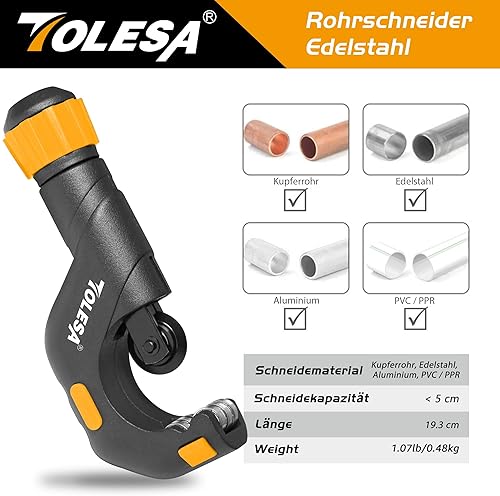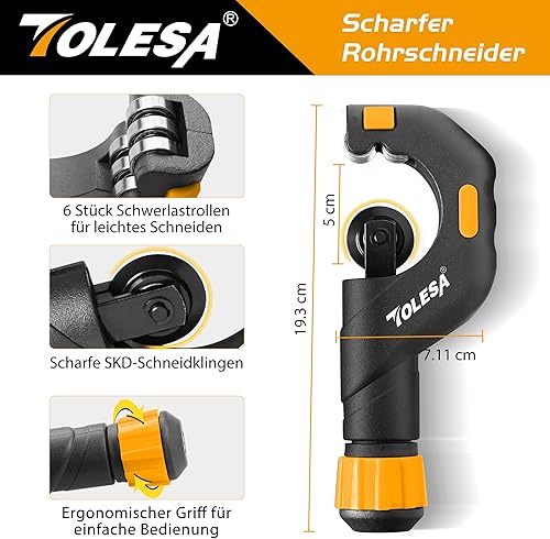 TOLESA Rohrschneider 5-50mm, Rohrabschneider mit Entgrater, Rohrschneider für Kunststoff, Dünner Edelstahl, Stahl, Kupferrohr, Aluminium, PVC Rohre Schneiden
