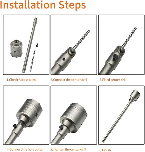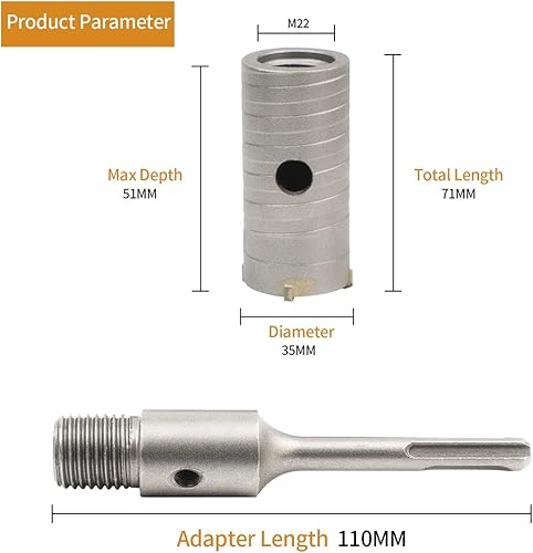 Meccion SDS Plus Adapter 310mm mit Pilotbohrer, Verlängerungsstange für Bohrer M22 für Betonsägenbohrer