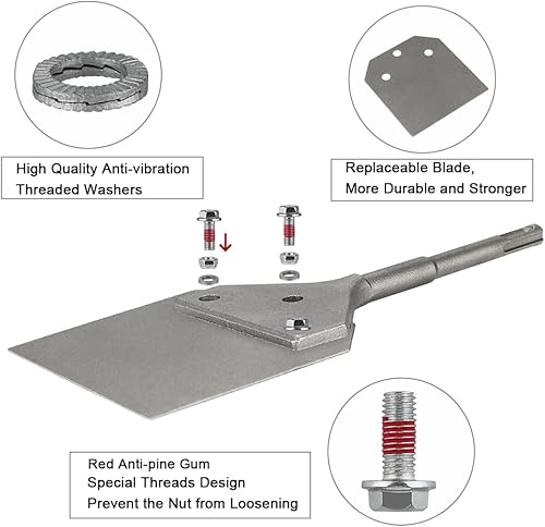 Spachtelmeißel SDS Plus Meißel 250x100 mm, Spachtelmeißel Farbschaber mit 2 Ersatzblätter Klingen für Fußbodenkleber, Teppich, Fliesenkleber, Bodenkleber, PVC-Fliesen