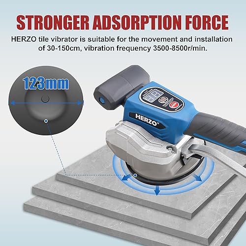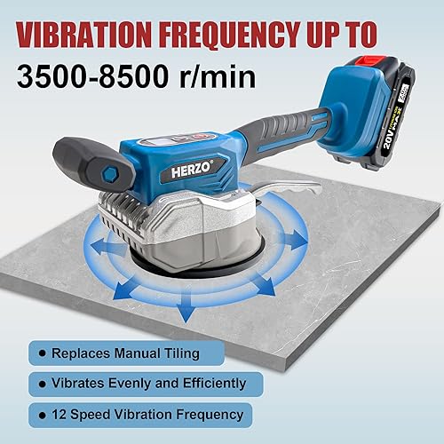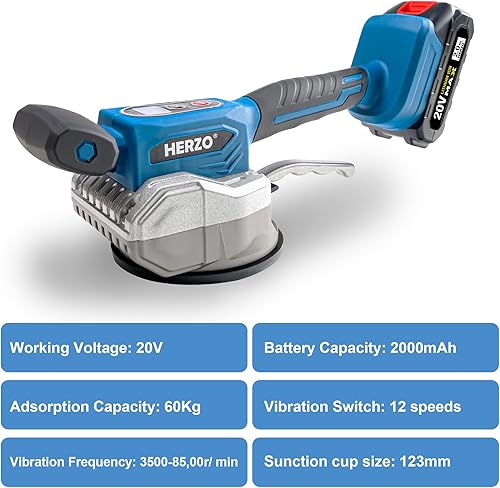 HERZO Kabellose Fliesen Vibrations Nivelliermaschine, Fliesenleger Vibrationswerkzeug, mit 12 einstellbaren Geschwindigkeiten, Saugnapf, Digitalanzeige (Batterien enthalten)