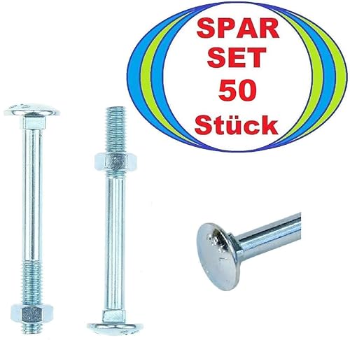 50 x Dresselhaus M8 x 75 Flachrundschrauben mit Vierkantansatz & Mutter Mu, galv. verzinkt DIN 603 M 8 Schlossschrauben ISO 8677 (50, M8 x 75)