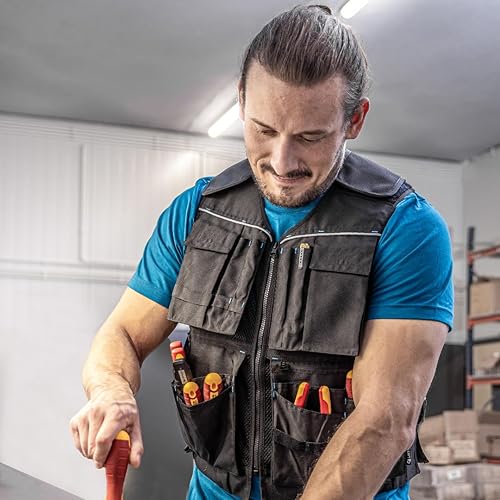 Högert Technik - HELWIG Werkzeugweste Schwarz Uni | Gewebe 100% OXFORD 600D Polyester | Arbeitsweste | Arbeitswesten männer mit vielen Taschen, Montageweste, Herren