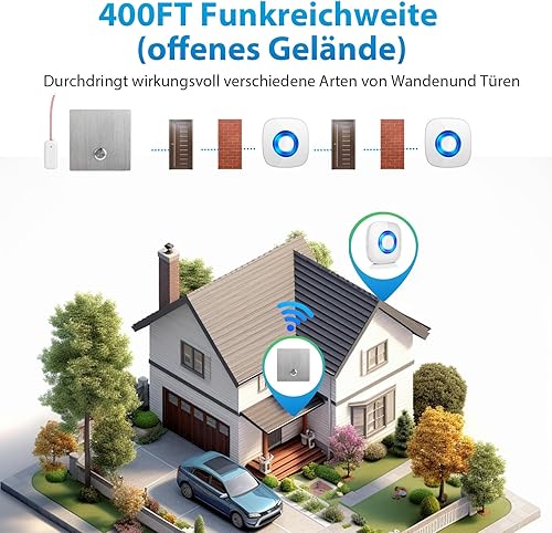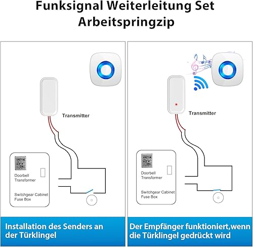 PHYSEN Funksignal Weiterleitung Batteriebetrieben, Funk Türklingel Weiterleitung Set, Türklingel und Gong Erweiterung, 1 Funkkonverter + 1 Batterie Empfänger für bestehende Klingelanlagen
