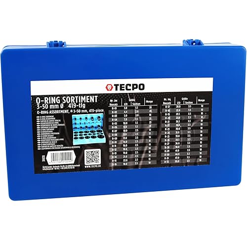 TECPO Gummi Dichtungsringe O Ring Sortiment, 419 teilig Ø 3-50 mm Durchmesser Dichtungsgummi Dichtring Set - Kraftstoff, Säure, Öl, UV, Hitze Beständig Sanitär, KFZ, Rohr Reparatur Dichtung Satz