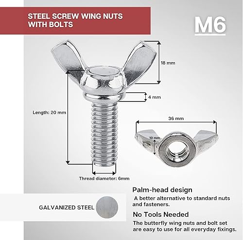 DOJA Industrial | Flügelschrauben M8 x 20 mm | PACK 10 | Handflügelschraube | Hochwertige Stahlschrauben | Flügelbolzen Daumen | Flügelgewinde Einfach zu verwenden und anzuwenden