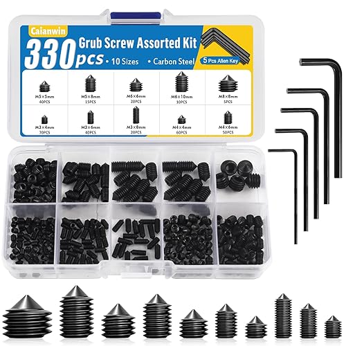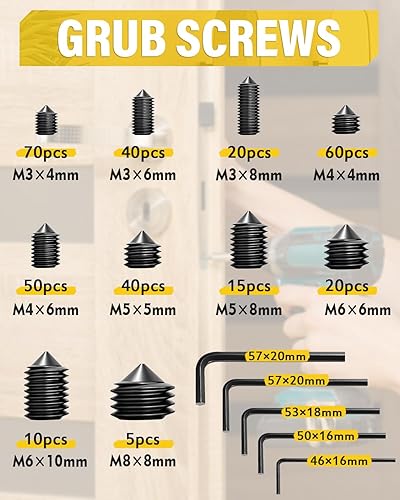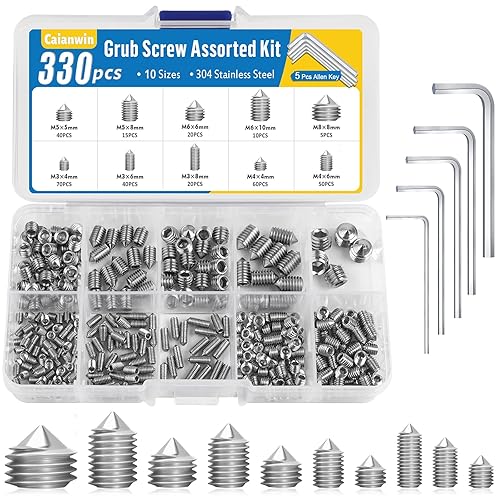 Caianwin 330 Stück Kegelspitz Madenschrauben Set M3 M4 M5 M6 M8 Edelstahl Schrauben Innensechskant Gewindestifte mit 5 Stk Schraubenschlüssel für Türklinke, Halterung
