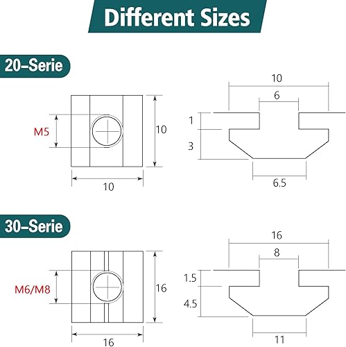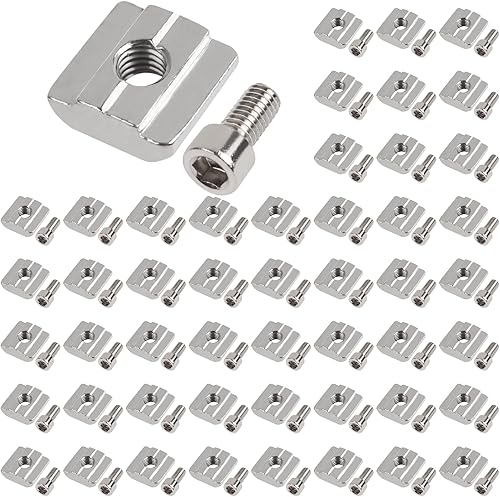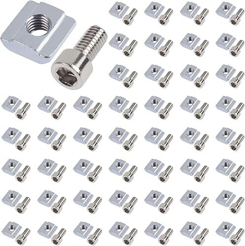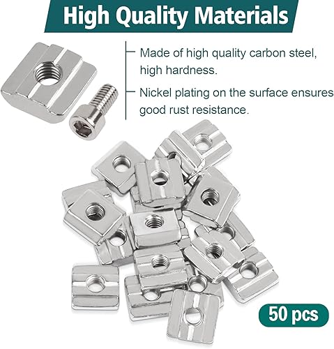 Ziamzra 50 Stück Nutensteine M8 Set 25 Stück T Nut Schiene M8 & 25 Stück Schrauben M8 30-Serie Nut 8 Typ B Schiebemuttern T Nutmuttern Kohlenstoffstahl für Aluprofil Extrusionsschlitz Führungsschiene