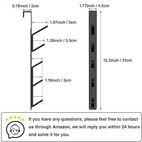 niffgaff Türhaken, vertikaler türhaken zum einhängen, kleiderhaken tür, haken zum einhängen, für Handtuch- und Kleiderbügel, Aluminium, Schwarz, 2er-Pack
