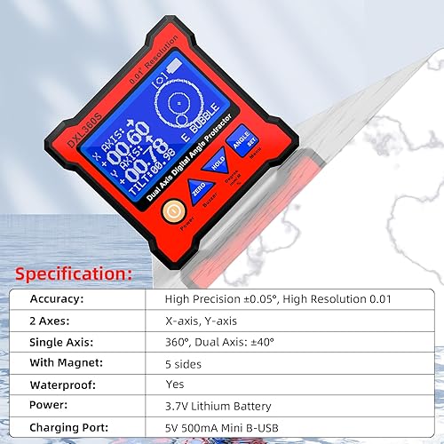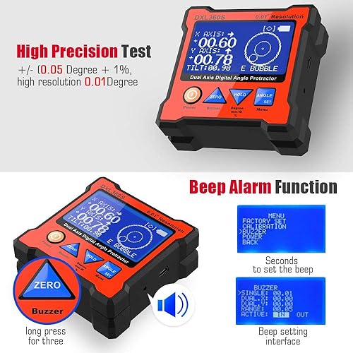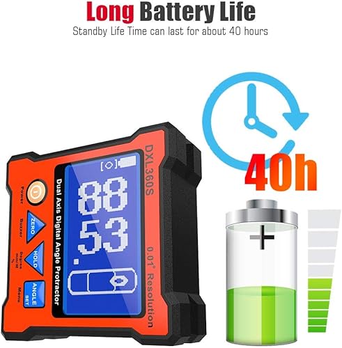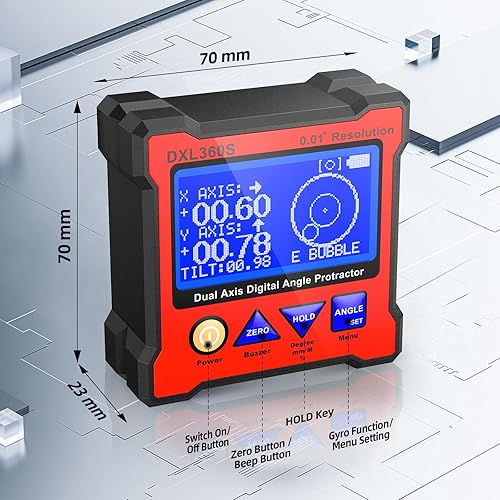 Digitaler Winkelmesser DXL360S Digitaler LCD Winkelmesser mit Gyro + Schwerkraft, Dual-Achsen Level Box Neigungsmesser Digital für die Holzbearbeitung, das Baugewerbe & die Automobilindustrie