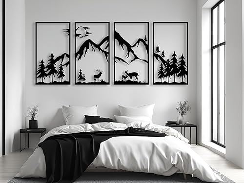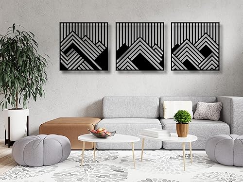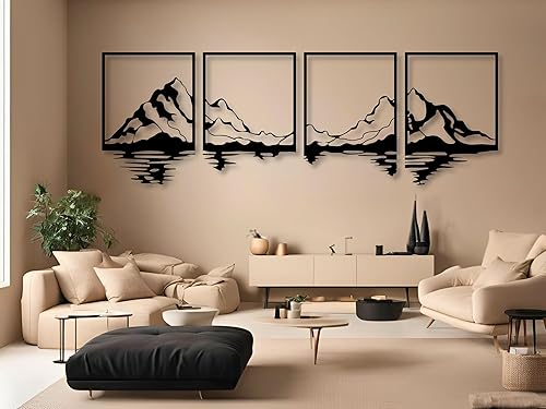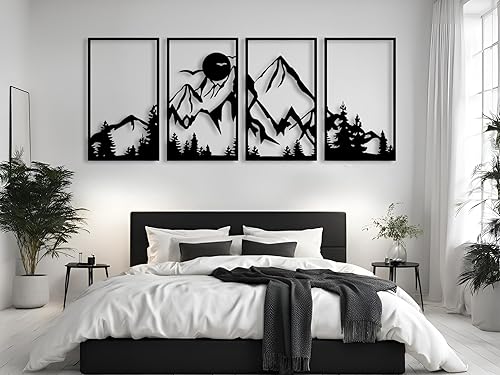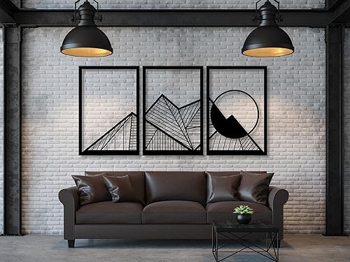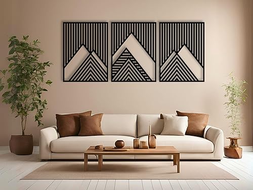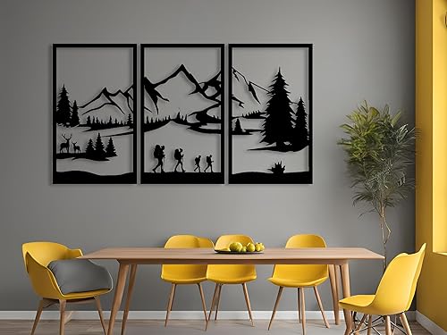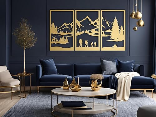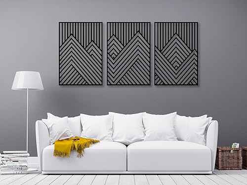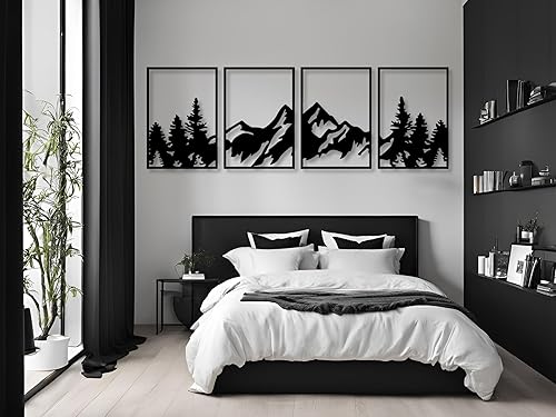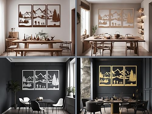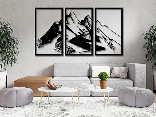Berge Wanddeko, Wandbild aus Holz, Wand deko in Schwarz Gold, 3D Bilder, Home Wall Art Dekoration, Wandaufkleber, Moderne , für Zuhause Büro Schlafzimmer, Wohnzimmer (Berge 3)