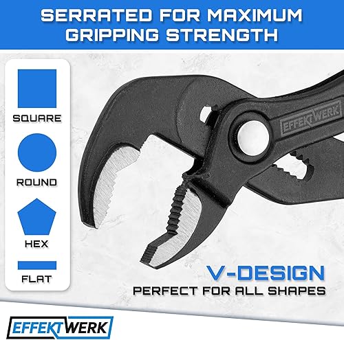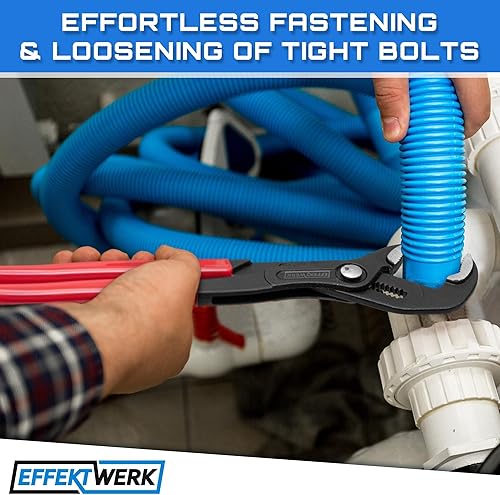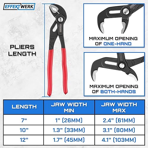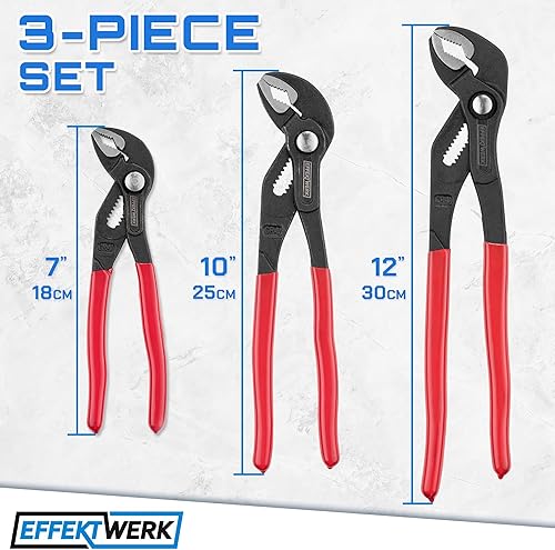 EffektWerk 3-teiliges Wasserpumpenzangen-Set (18 cm, 25 cm, 30 cm), rutschfester Klempnerschlüssel, Nut- und Federzange mit verstellbaren Backen