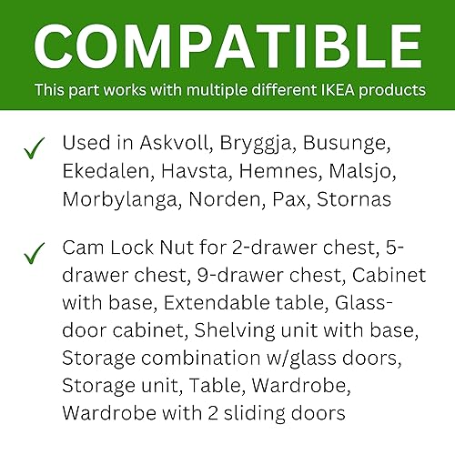 Spare Hardware Parts Nockenkontermutter, 18 mm, Ersatz für IKEA-Teilenummer 113434, 10 Stück
