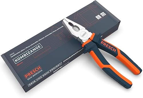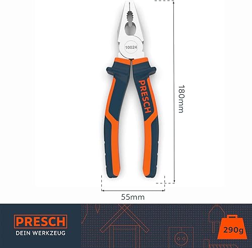 Presch Kombizange 180 mm - Universalzange ölgehärtet aus CR-V mit 2-Komponenten Griff und Greifflächen gezahnt