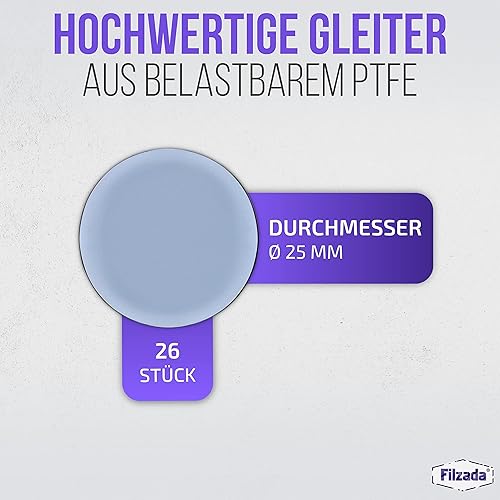Filzada® 16x Teflongleiter Selbstklebend - Ø 25 mm (rund) - Profi Möbelgleiter/Teppichgleiter PTFE (Teflon)